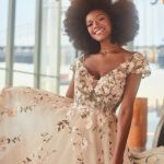 All the romance of realistic blossoms and trailing vines are embodied in our Madison James Johnny Gown – perfect for a secret garden wedding. Magical floral motifs decorate the sheer bodice and flow down the skirt of the MJ900 Johnny dress, covering you in a cascade of flowers. The charming combination of an A-line silhouette and flowery cap sleeves delivers a light and sophisticated look for your special day.